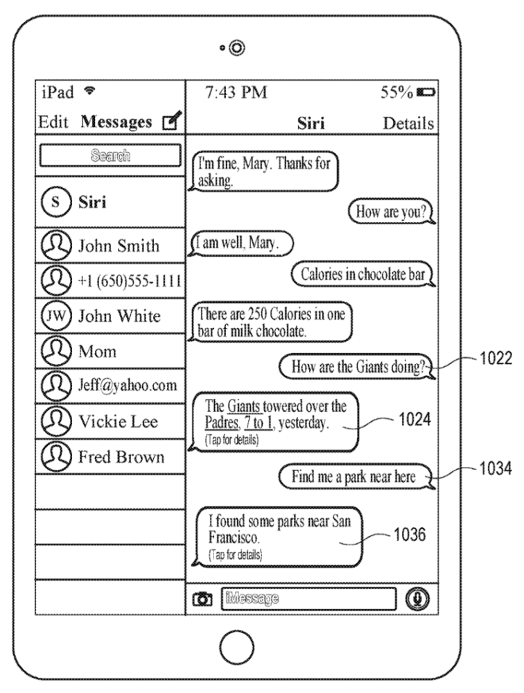 In a later version of iOS, Siri is coming to messaging environments with one or more people as indicated in the Apple Siri patent.